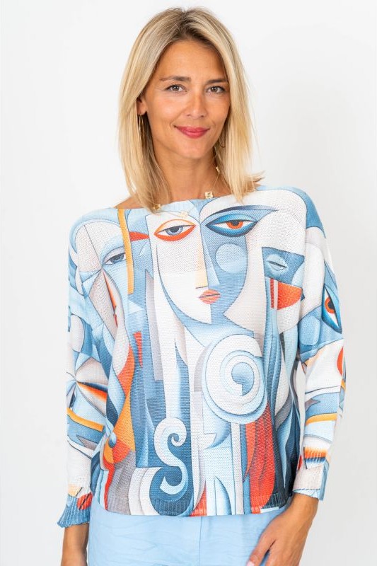 Look Mode View Details Mint Abstract Print Batwing Sweater Sale Price $62.00 - Boat neckline - 3/4 length sleeves - One size fits most