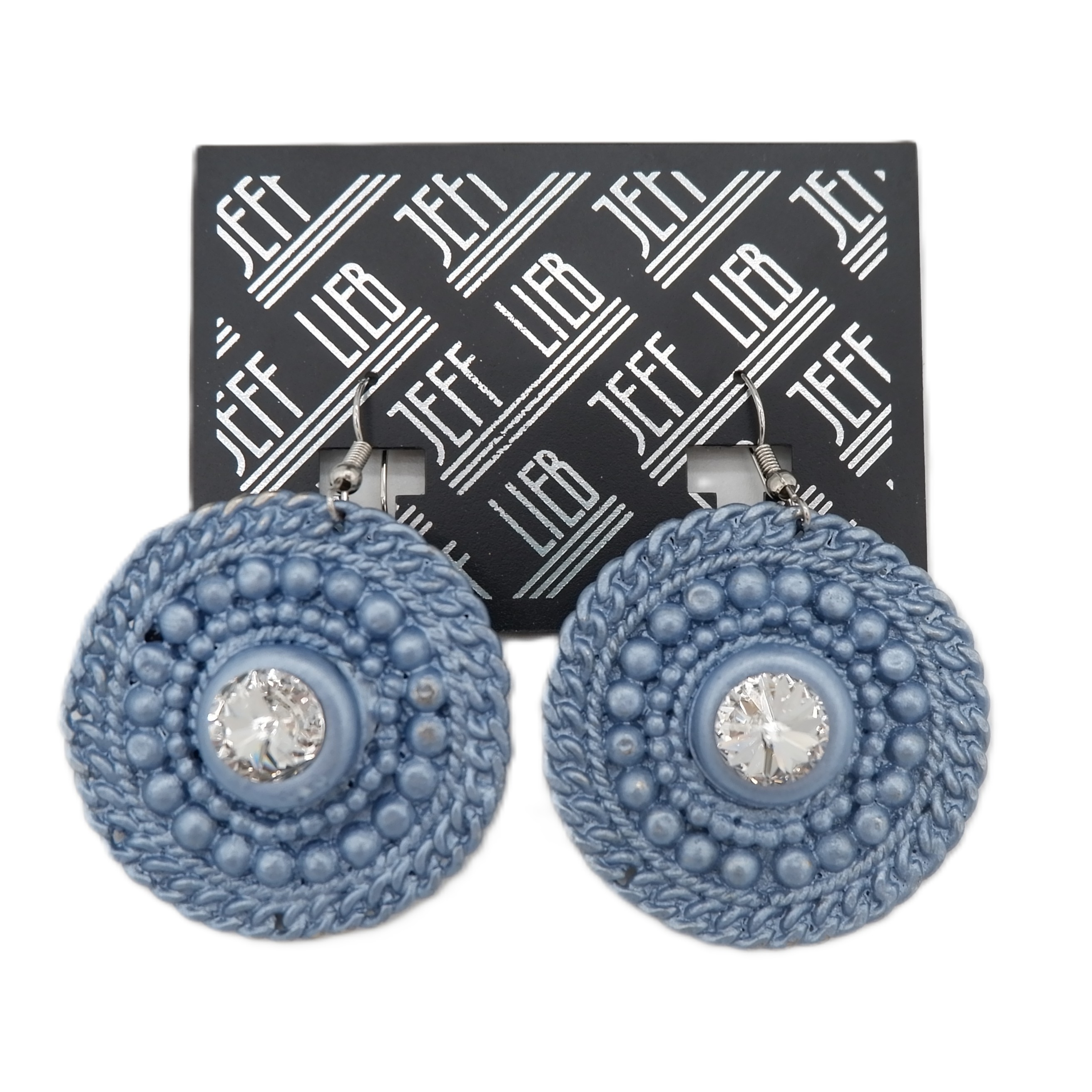 Jeff Lieb Add to Cart Golden Round Pendant Statement Earrings SKU 29591 Sale Price $54.00 - Nickel Free - Genuine Swarovski Crystals - Made in USA