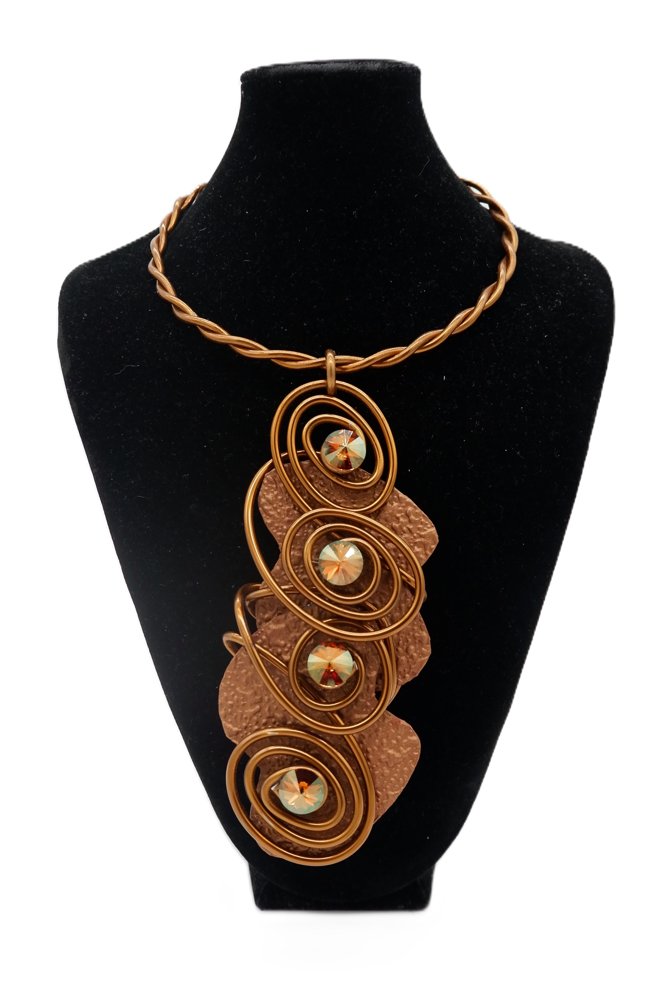 Jeff Lieb Add to Cart Bronze Twist Wire Statement Necklace SKU 29582 Sale Price $139.00 - Genuine Swarovski Crystals - Twist Wire Necklace - Made in USA