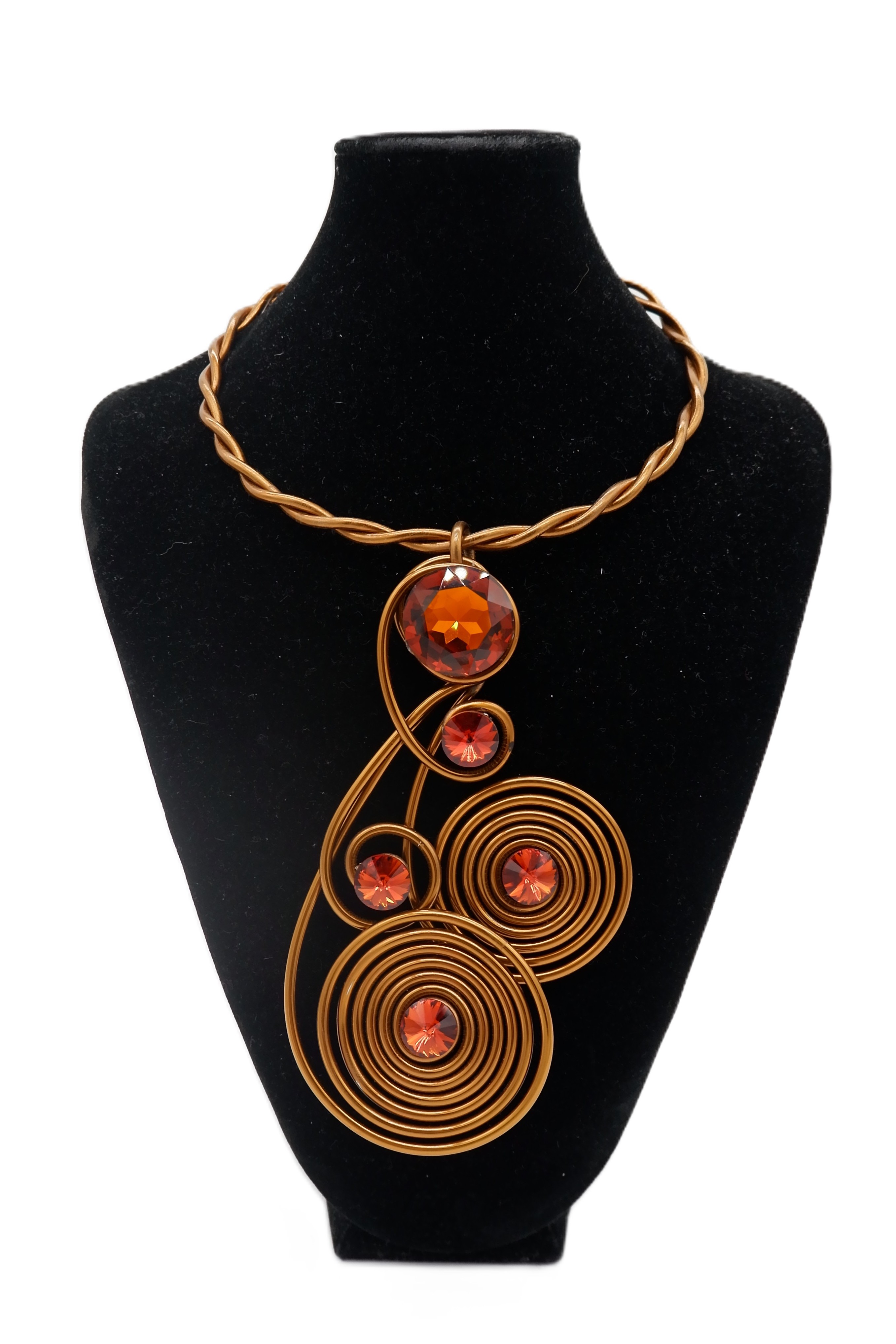 Jeff Lieb Add to Cart Bronze Statement Twist Wire Necklace SKU 29599 Sale Price $139.00 - Genuine Swarovski Crystals - Twist Wire Necklace - Made in USA