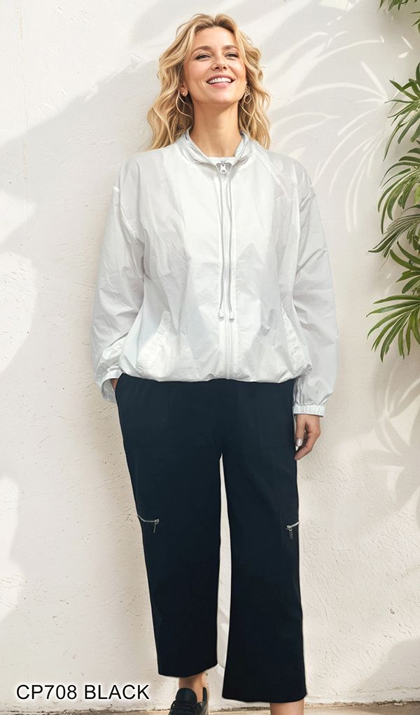Compli K View Details Cropped Zipper Detail Pants Sale Price $132.00 - Elastic waistband - High-waisted - Cropped length