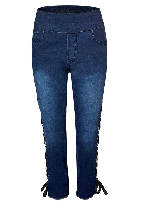 - Grommet and ribbon side tie detail