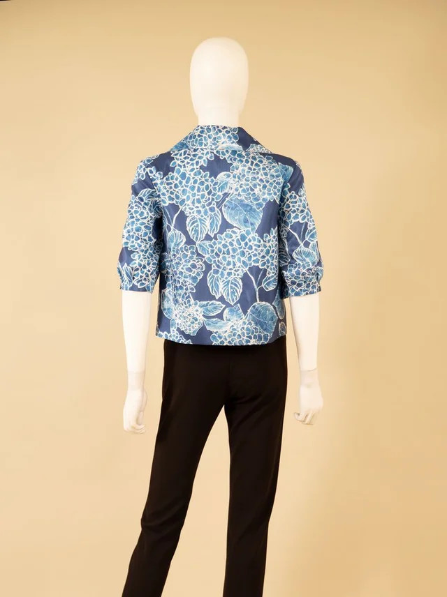 Product Description - Print dupioni fabrication - Front zipper closure - Cropped style - Pockets - Fully lined