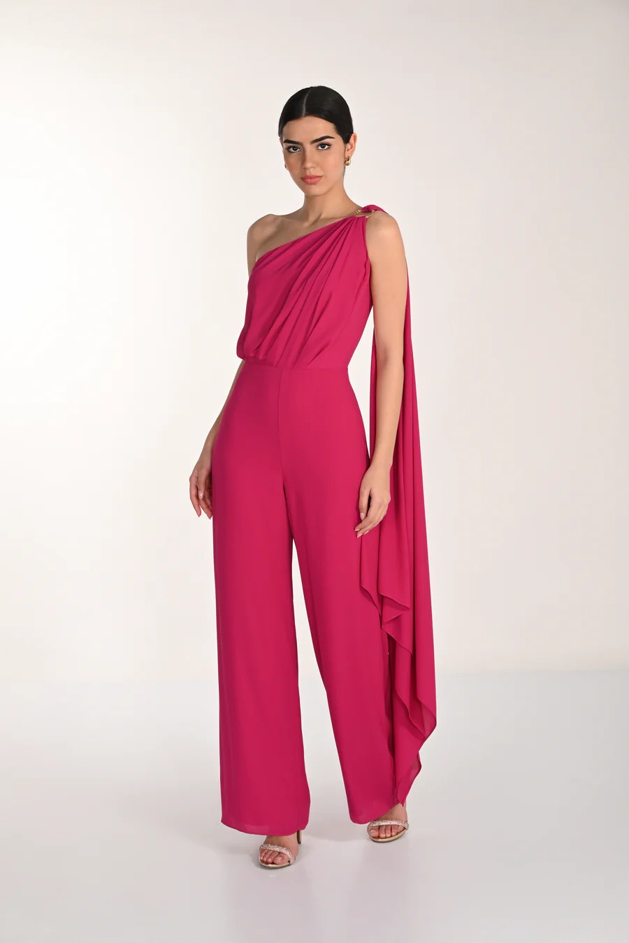 Sale Last Tango View Details Off-Shoulder Draped Jumpsuit with Side Slit $138.00 $138.00 Sale Price $103.00 - Draped chiffon crossover - One shoulder - Wide leg fit with side slit