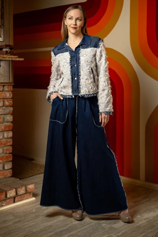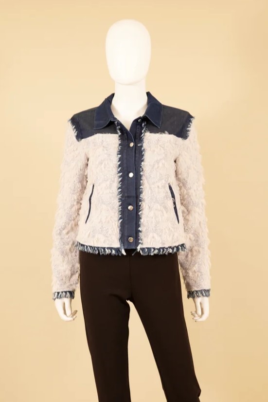 - Yarn dyed jacquard with denim trim