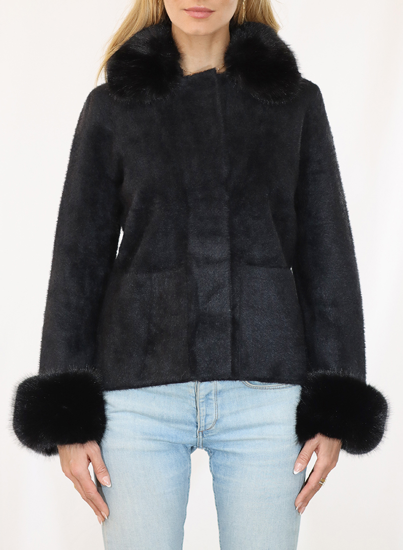 Product Description - Faux fur collar and sleeve cuffs - Hidden snap button closures - Pockets - Hip length