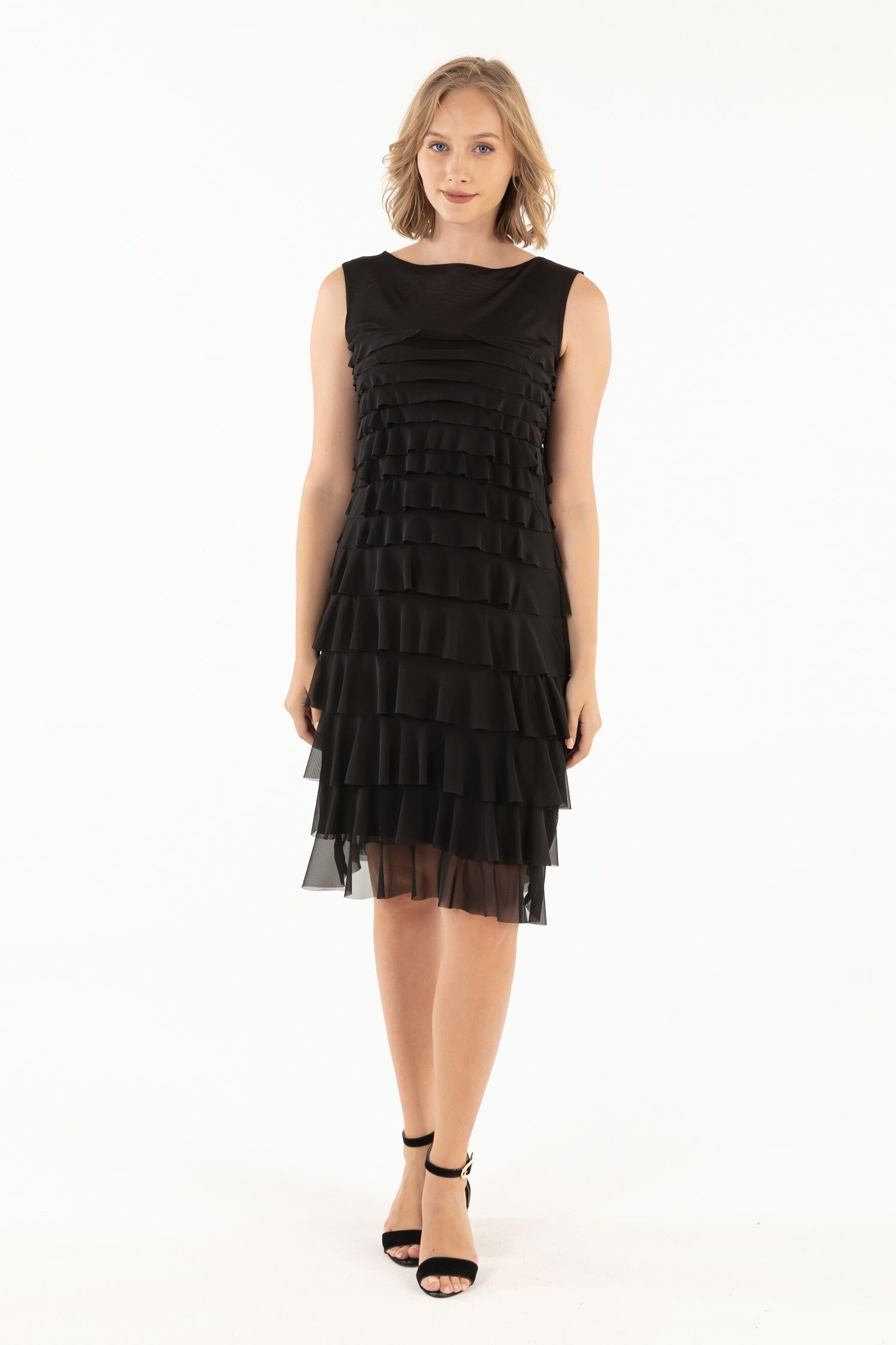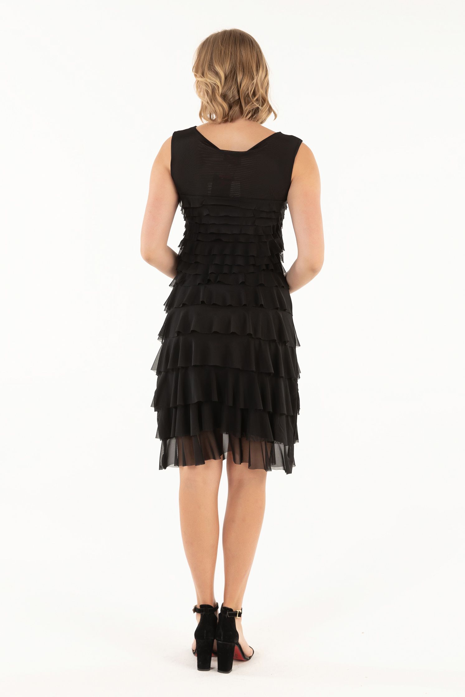 - Tiered mesh ruffles