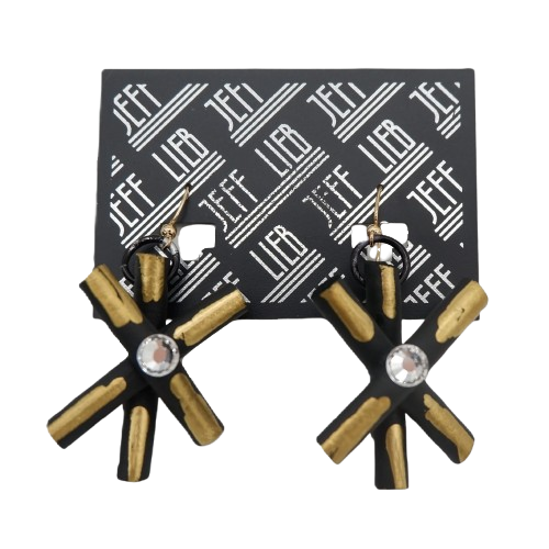 Jeff Lieb Add to Cart Black Rubber Detail Pendant Earrings SKU 26394 Sale Price $49.00 - Nickel Free - Genuine Swarovski Crystals - Made in USA