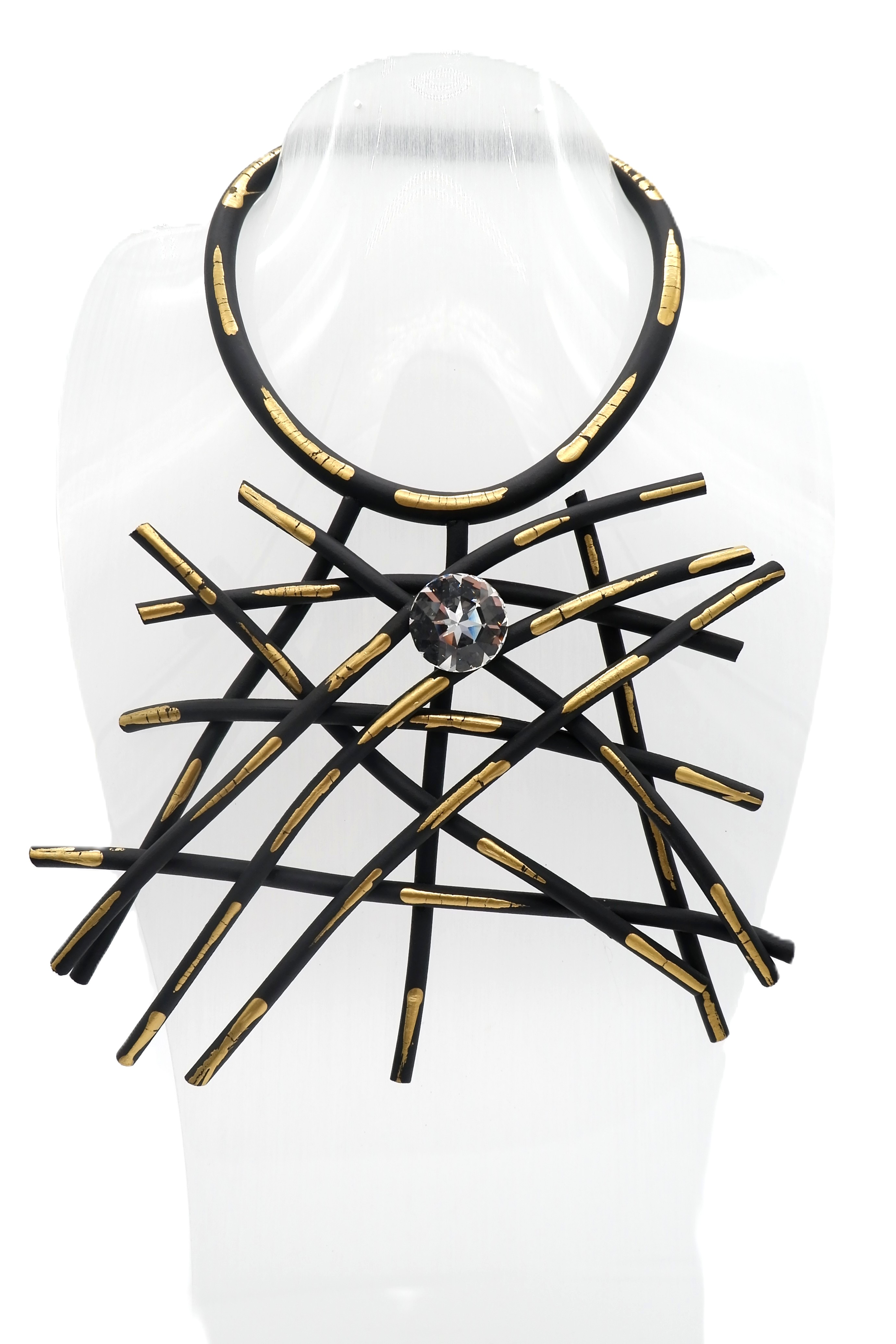 Jeff Lieb Add to Cart Silver and Black Statement Rubber Necklace SKU 27428 Sale Price $159.00 - Genuine Swarovski Crystals - Soft Rubber Necklace with Magnetic Closure - Made in USA