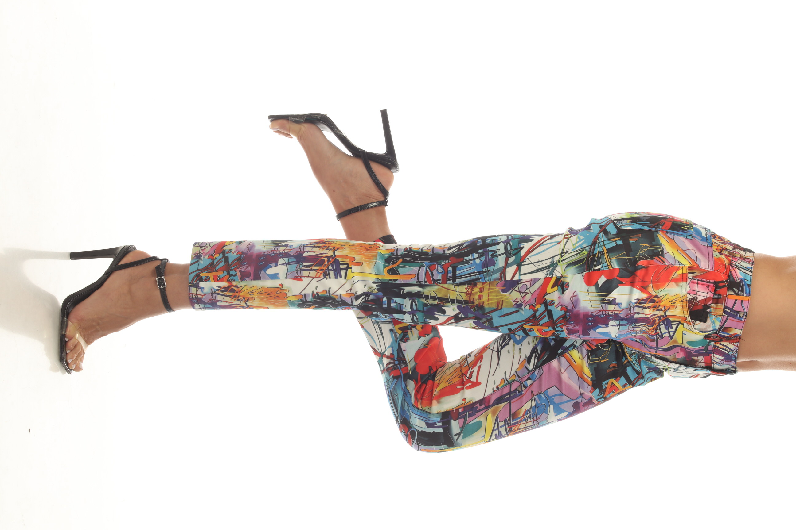 Product Description - Graffiti abstract print - Zipper and button fly - 5-pocket styling - Cropped fit - Slim leg fit