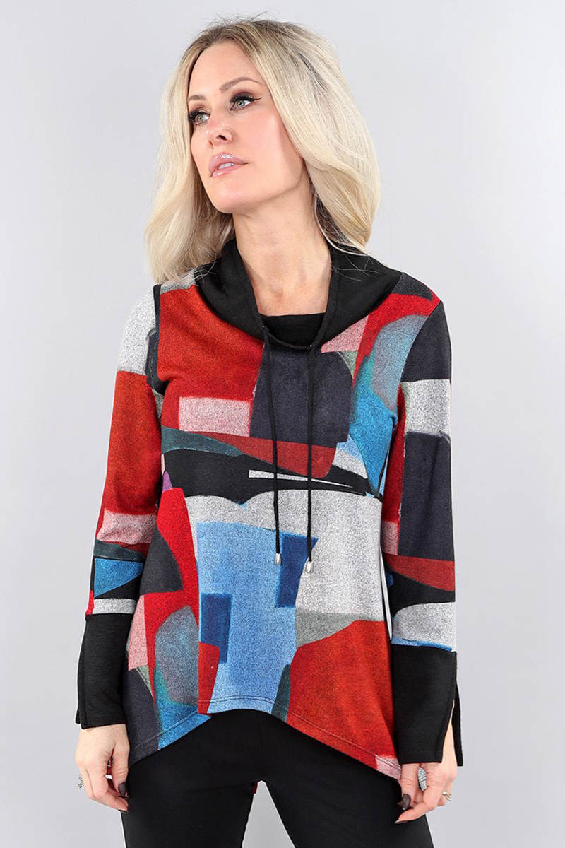 - Draped cowl neckline with drawstrings