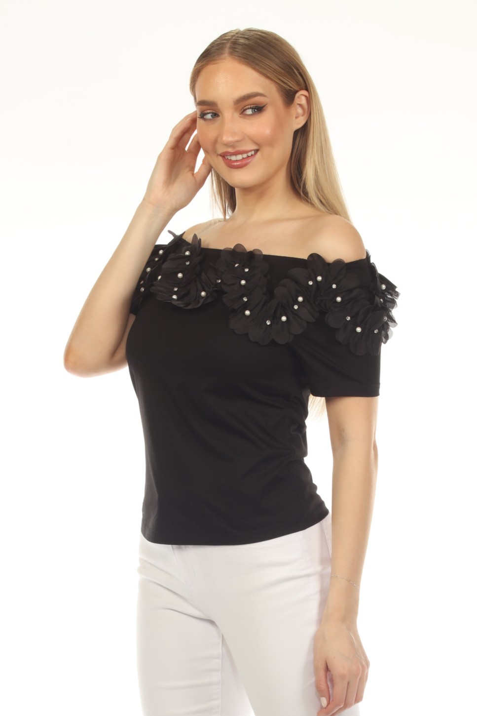 Eva Varro View Details Off-Shoulder Printed Top Sale Price $134.00 - Off-shoulder neckline with shoulder straps - 3/4 length sleeves - Wrinkle-free fabric