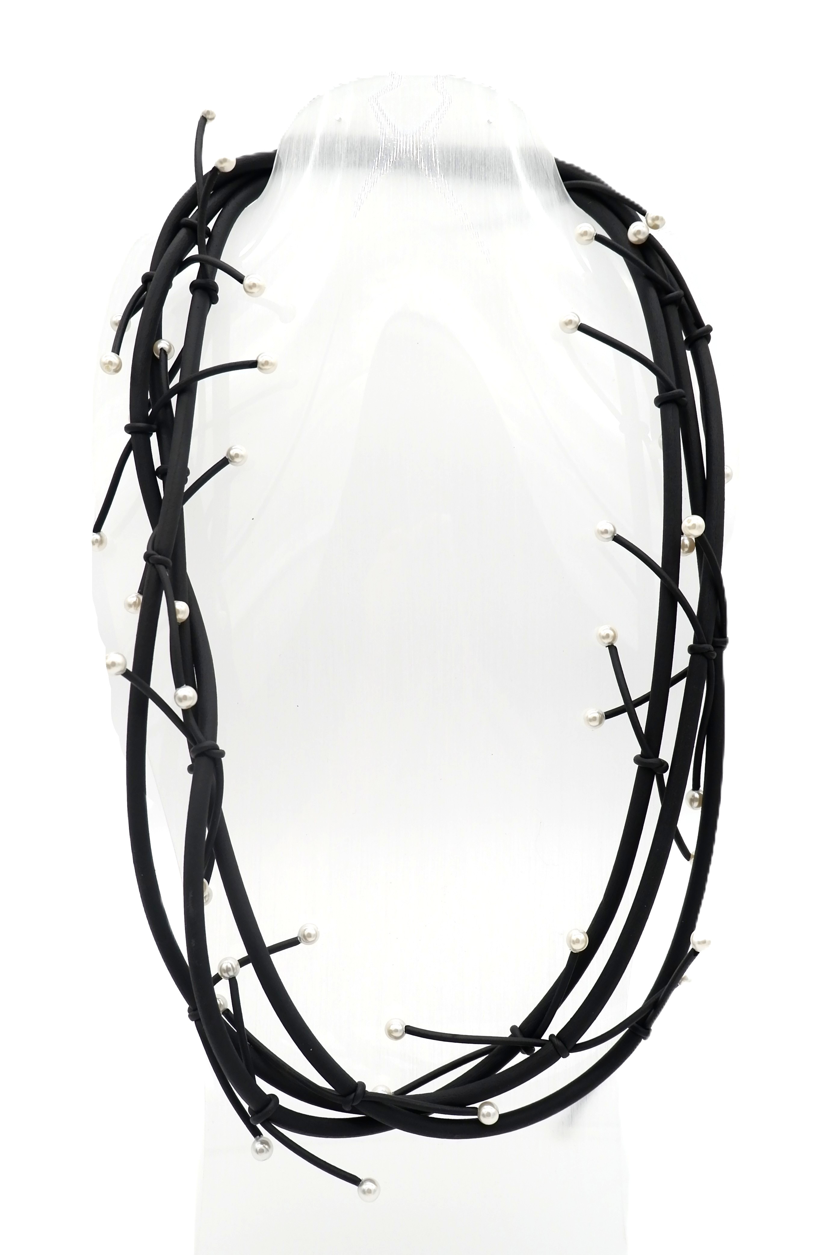 Product Description - Faux pearl tassels - Soft, Thin Multi-Strand Rubber Necklace with Magnetic Closure - Made in USA