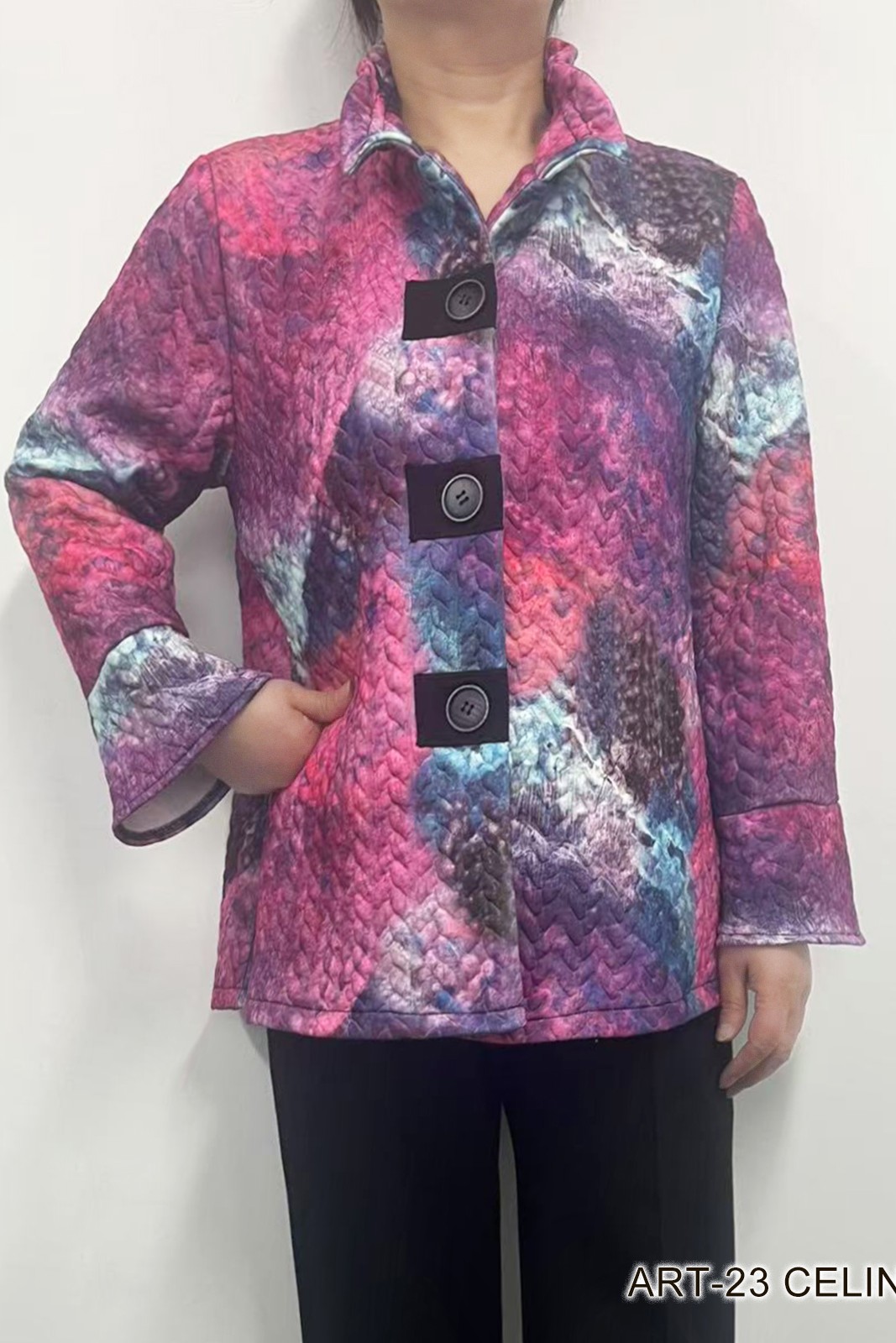 Product Description - Button closures - Adjustable wire collar - Long sleeves with flared cuffs - Soft quilted texture
