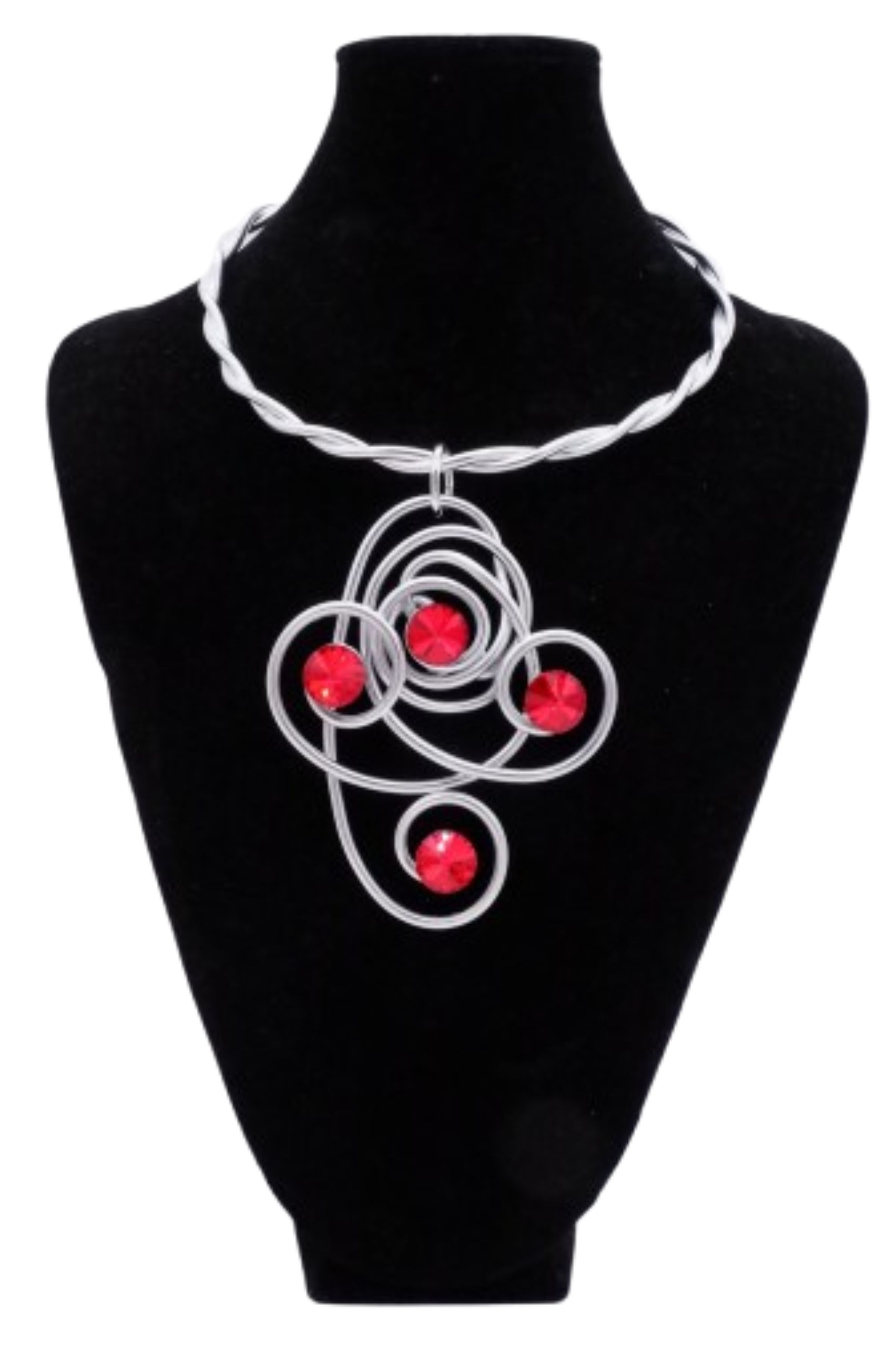 Red Crystals Silver Twist Wire Necklace SKU 27394