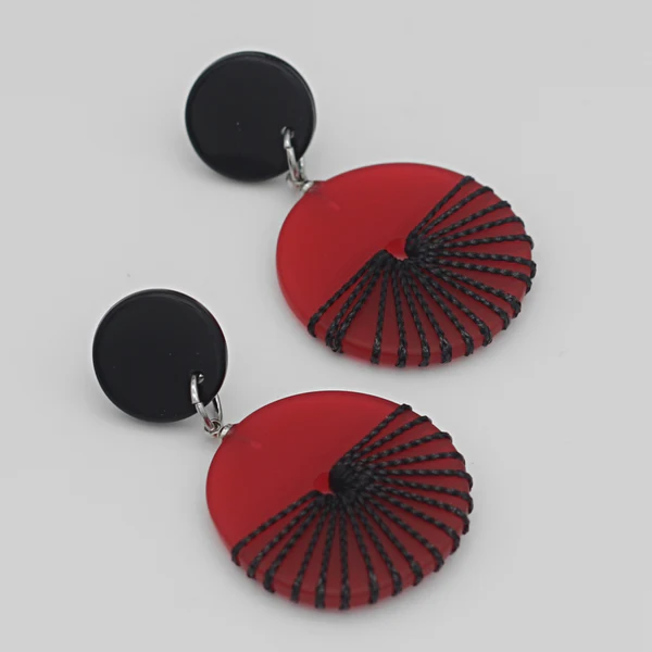 - Red acrylic bead wrapped in black thread