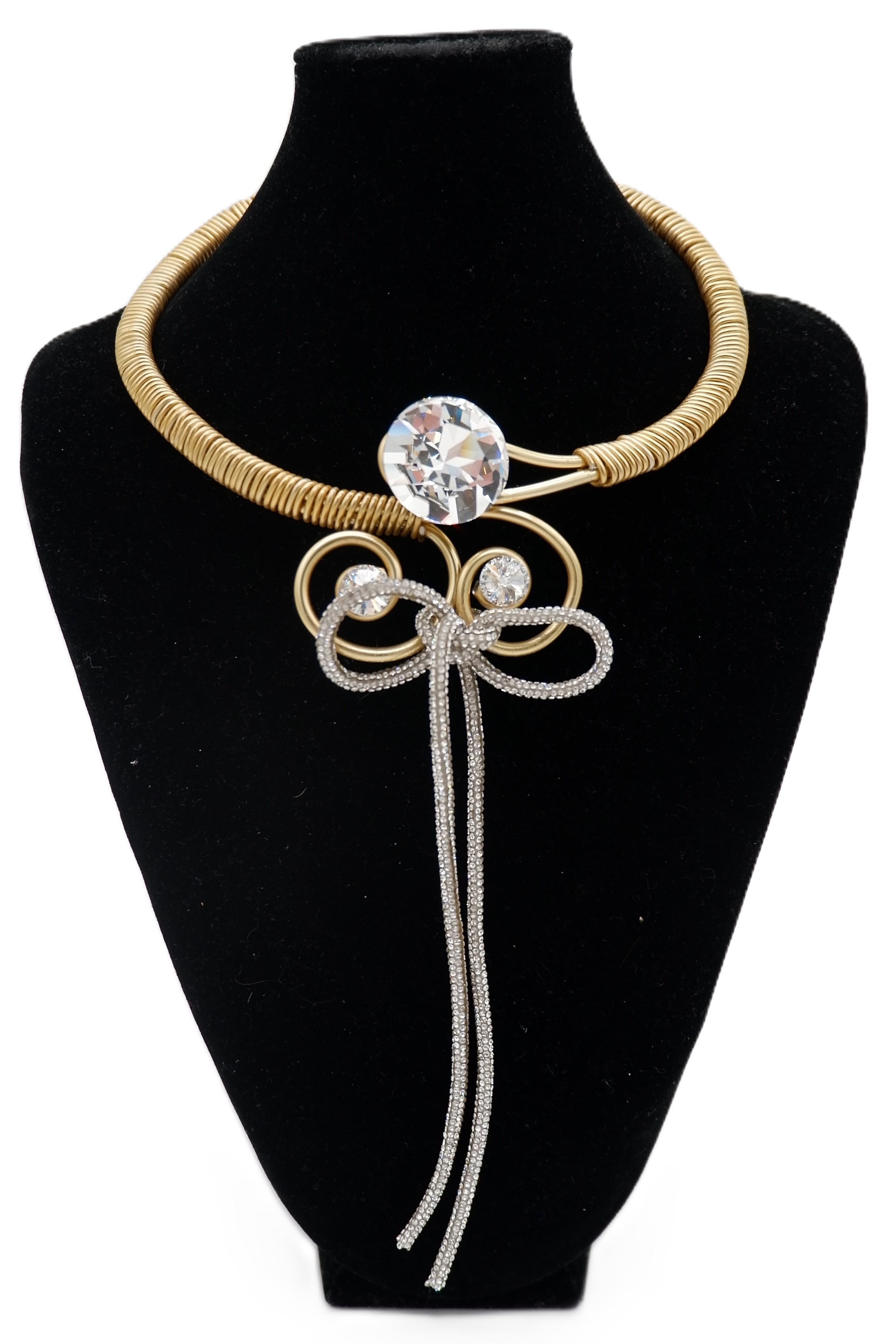 Jeff Lieb Add to Cart Rhinestone Bow Silver Twist Wire Necklace SKU 30701 Sale Price $149.00 - Genuine Swarovski Crystals - Twist Wire Necklace - Made in USA