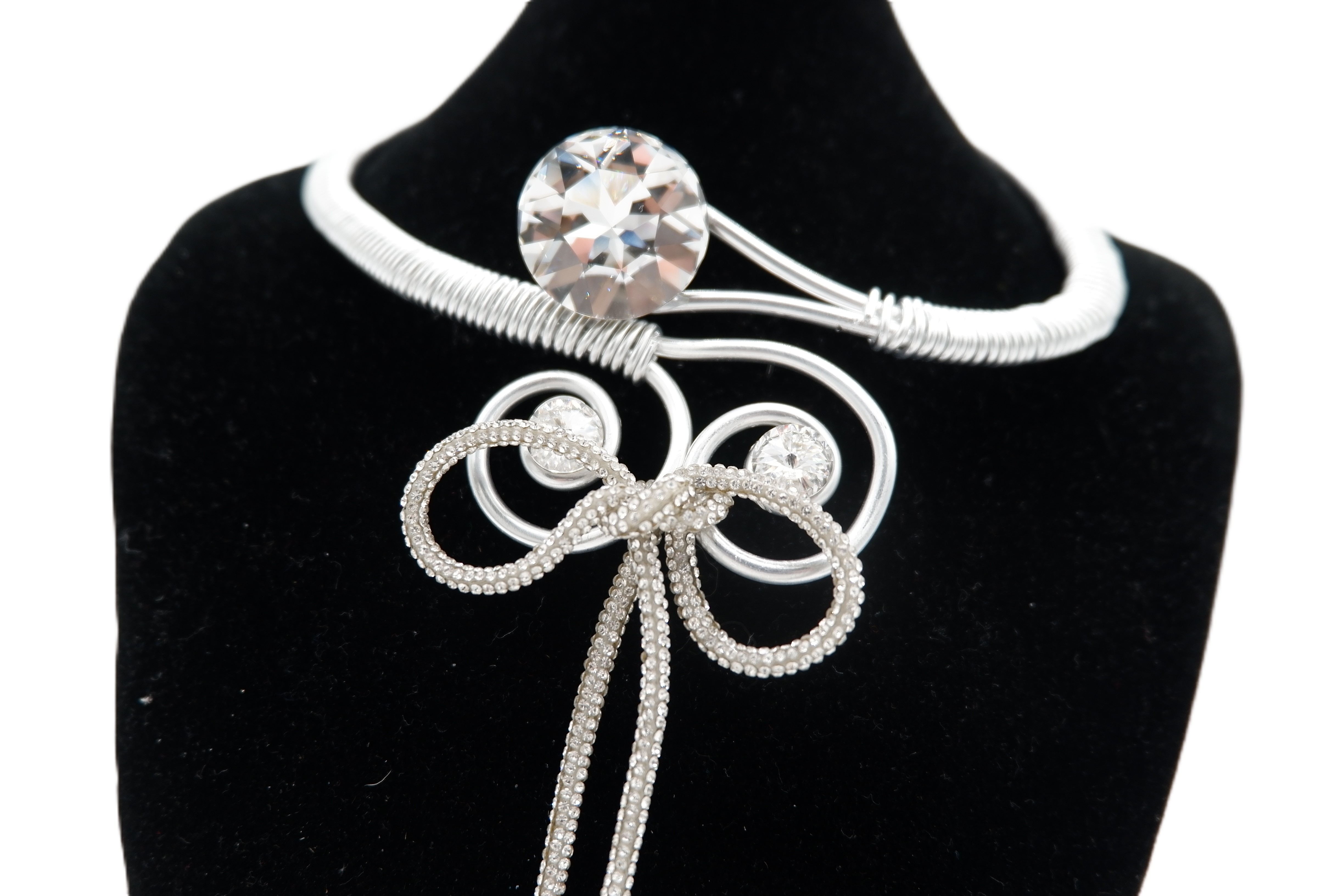 Jeff Lieb Add to Cart Rhinestone Bow Gold-Tone Twist Wire Necklace SKU 30702 Sale Price $149.00 - Genuine Swarovski Crystals - Twist Wire Necklace - Made in USA