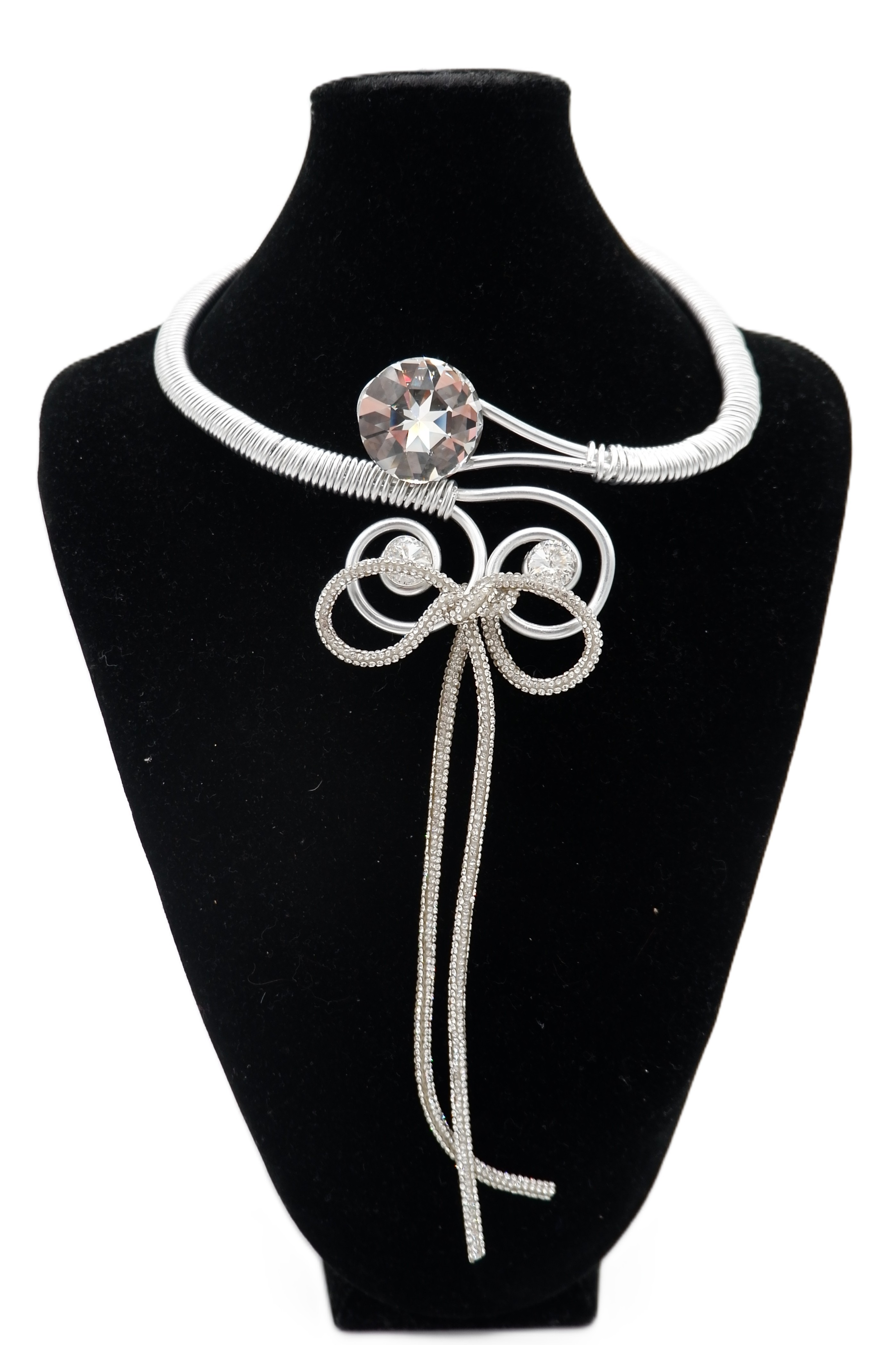 Jeff Lieb Add to Cart Silver Rhinestone Tassel Twist Wire Necklace SKU 30748 Sale Price $149.00 - Genuine Swarovski Crystals - Twist Wire Necklace - Made in USA