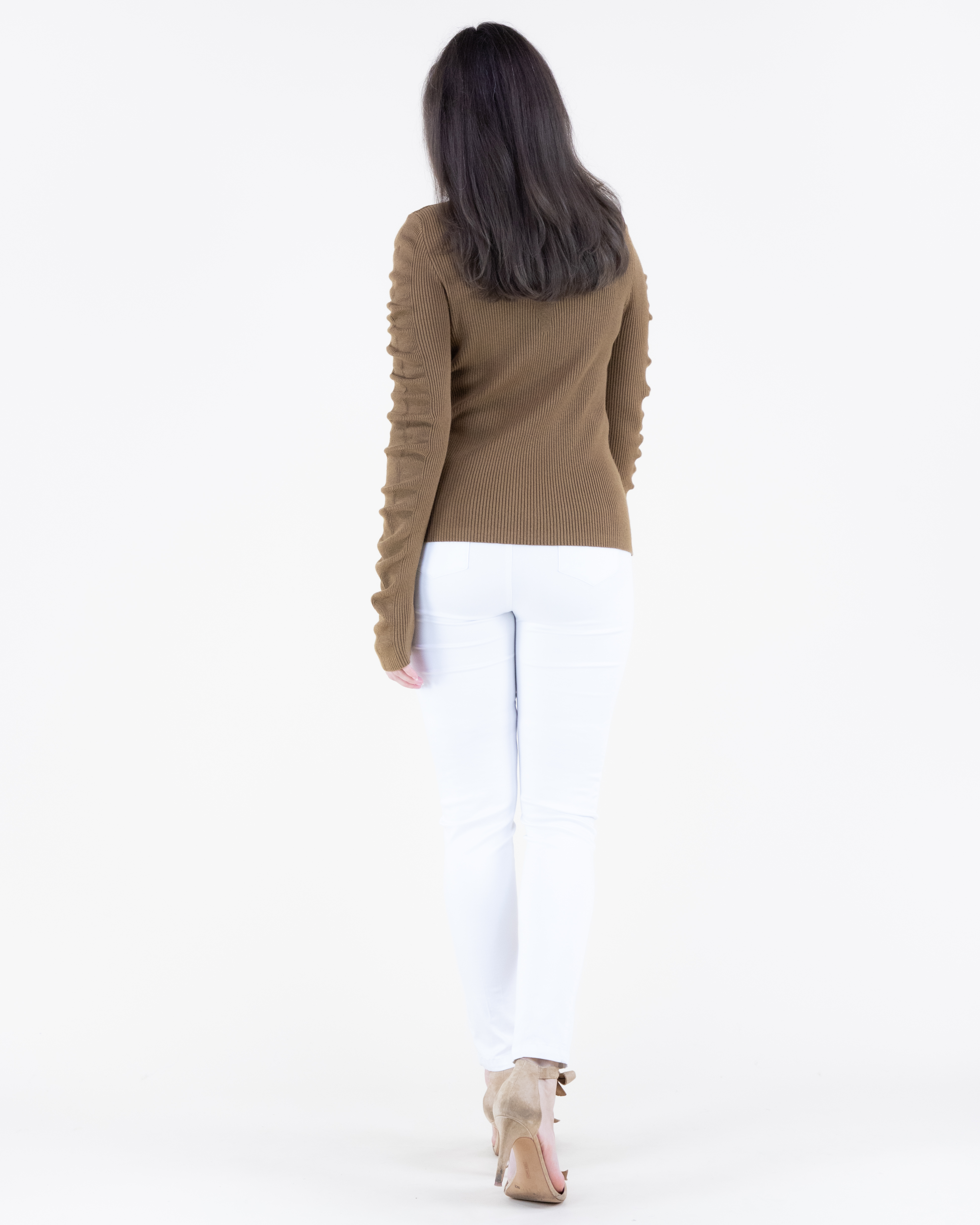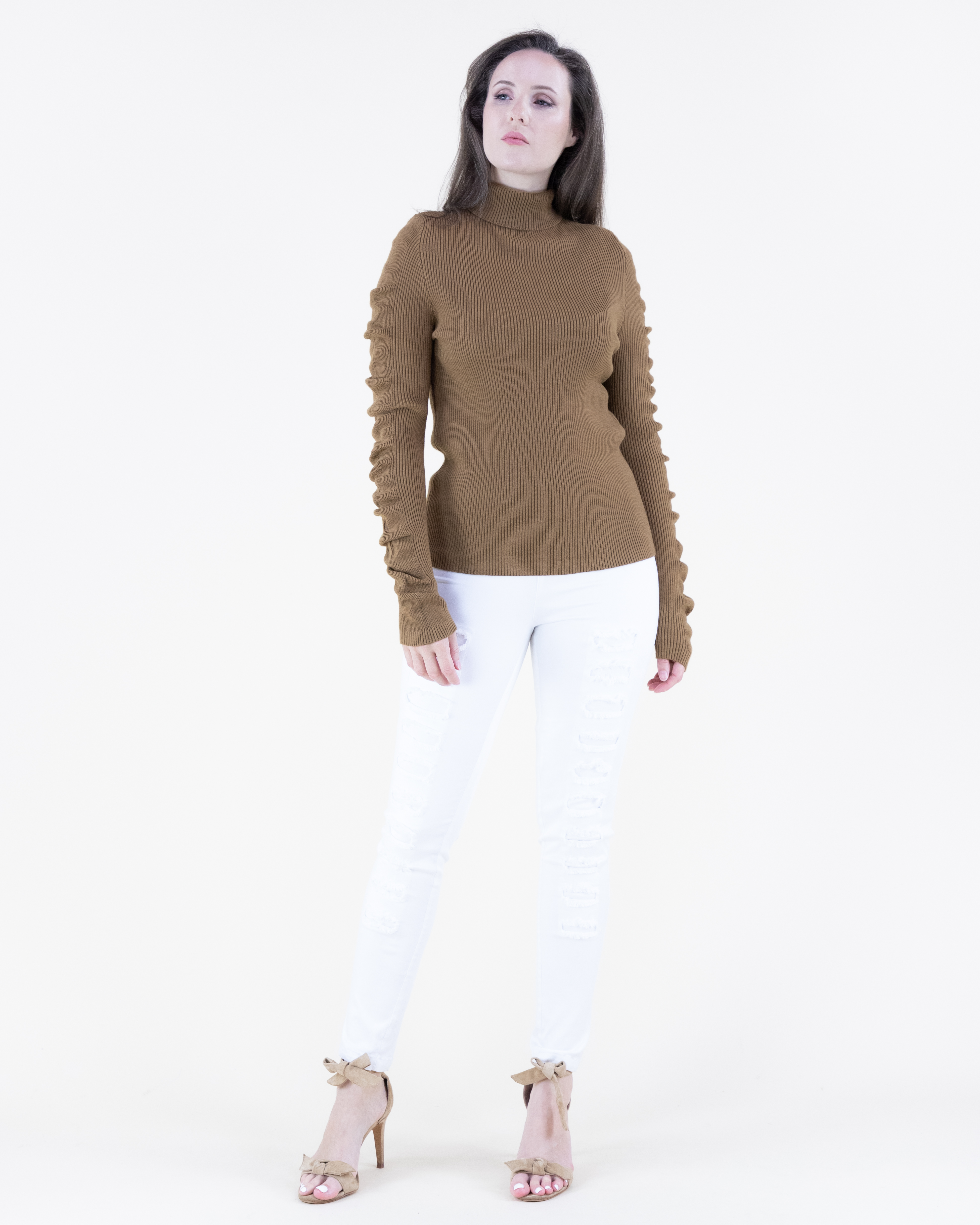 Elena Wang View Details Keyhole Turtleneck Sweater Sale Price $114.00 - Mock neckline - Keyhole neckline detail - Long sleeves with puffy shoulder detail <