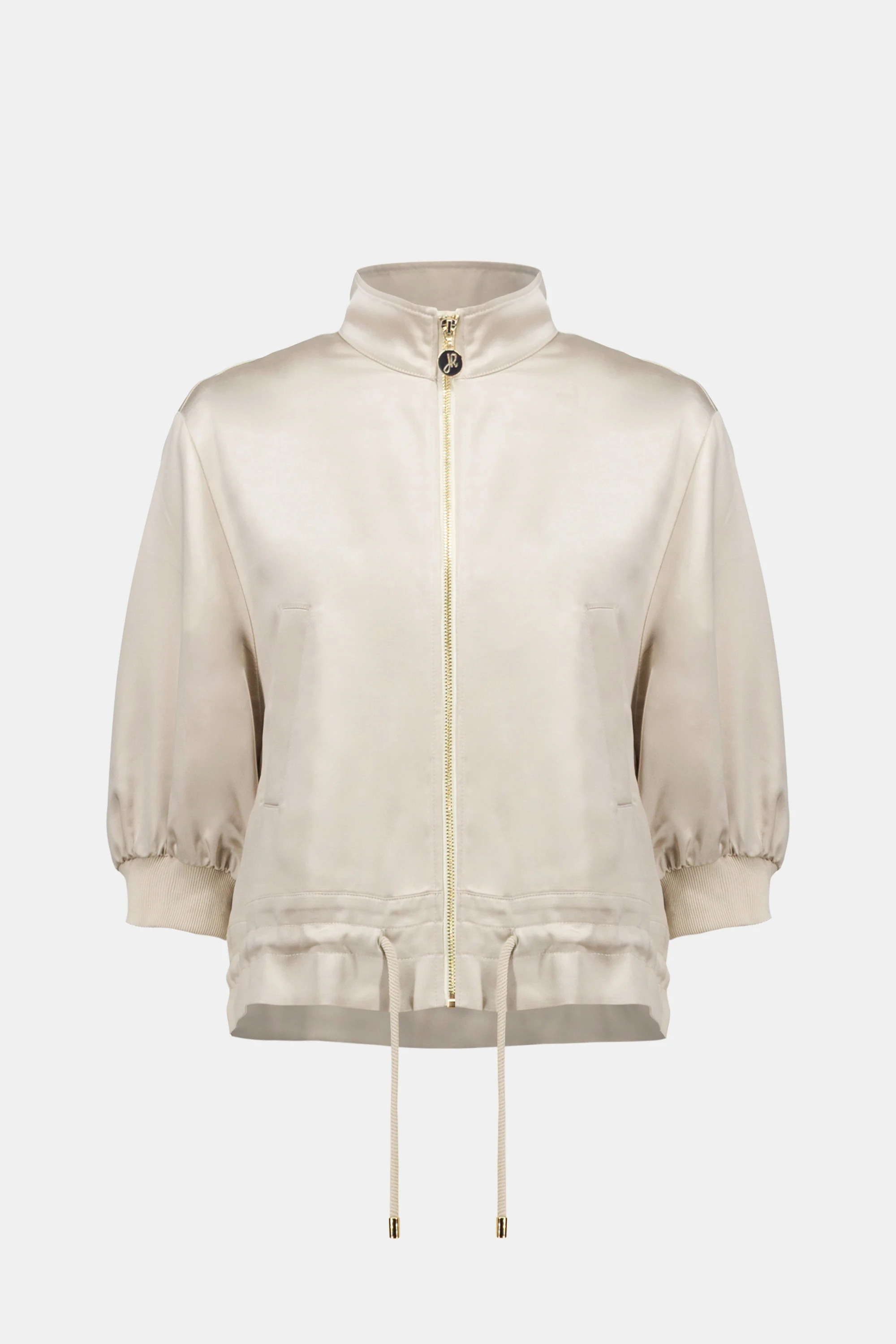 - Drop shoulder three-quarter sleeves with ribbed cuffs