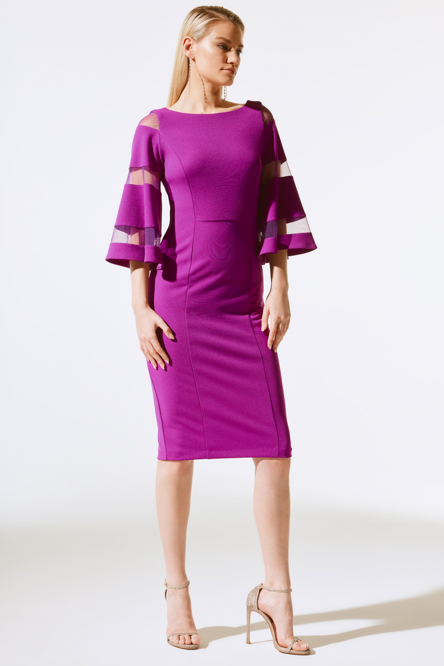 - 3/4 bell sleeves with mesh inserts