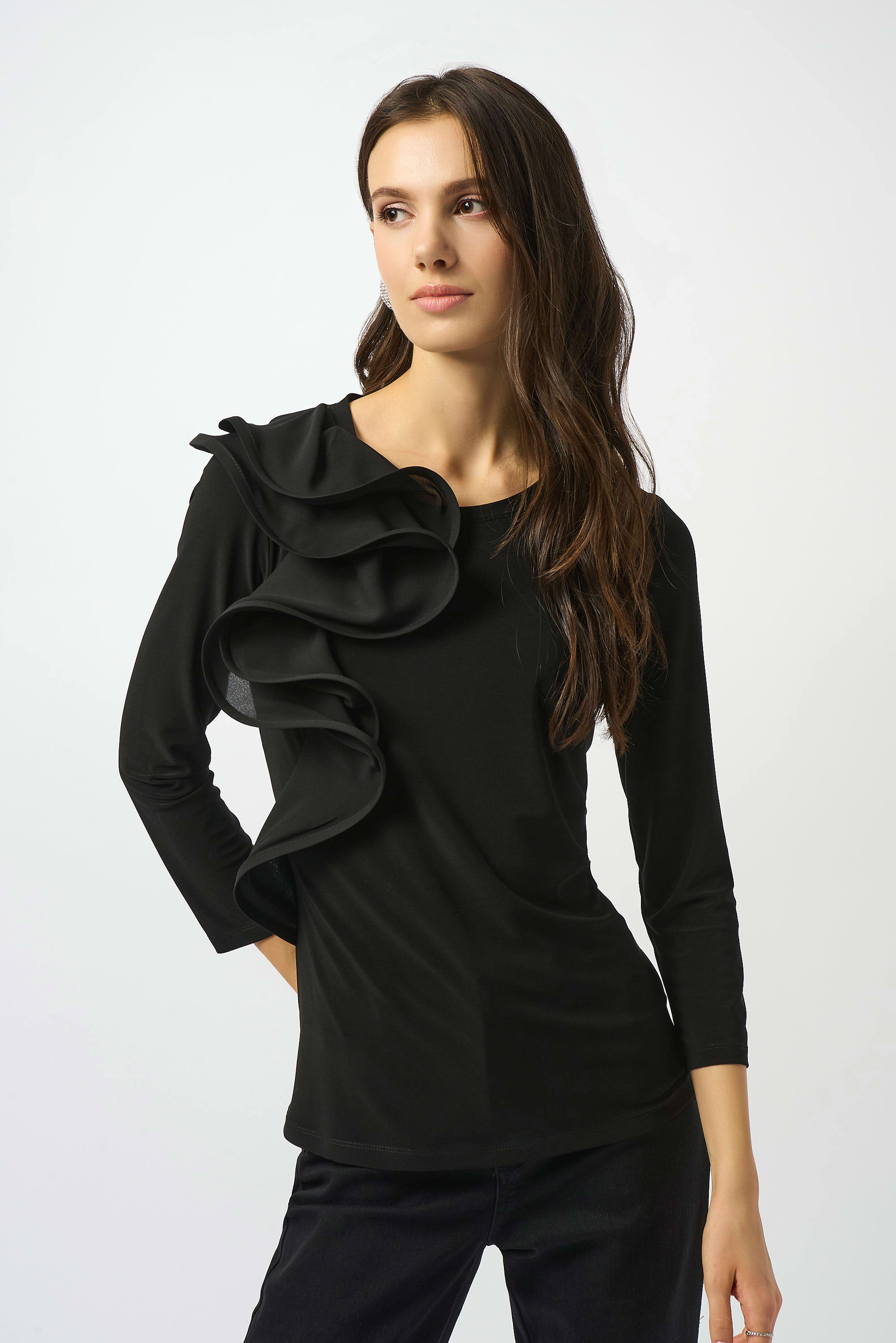 - Ruffled horsehair detail in solid georgette