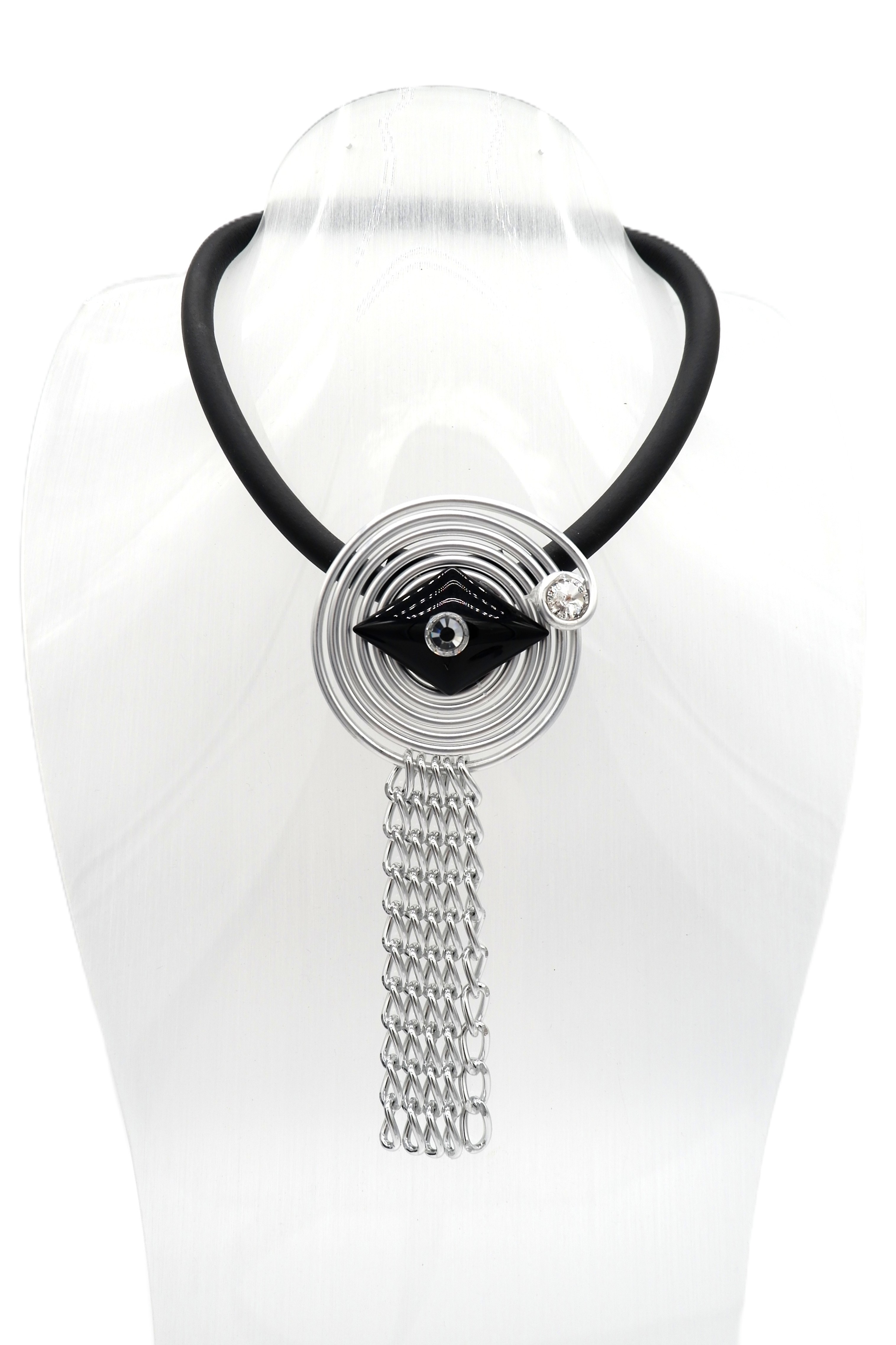 Jeff Lieb Add to Cart Silver and Black Statement Rubber Necklace SKU 25220 Sale Price $149.00 - Genuine Swarovski Crystals - Soft Rubber Necklace with Magnetic Closure - Made in USA