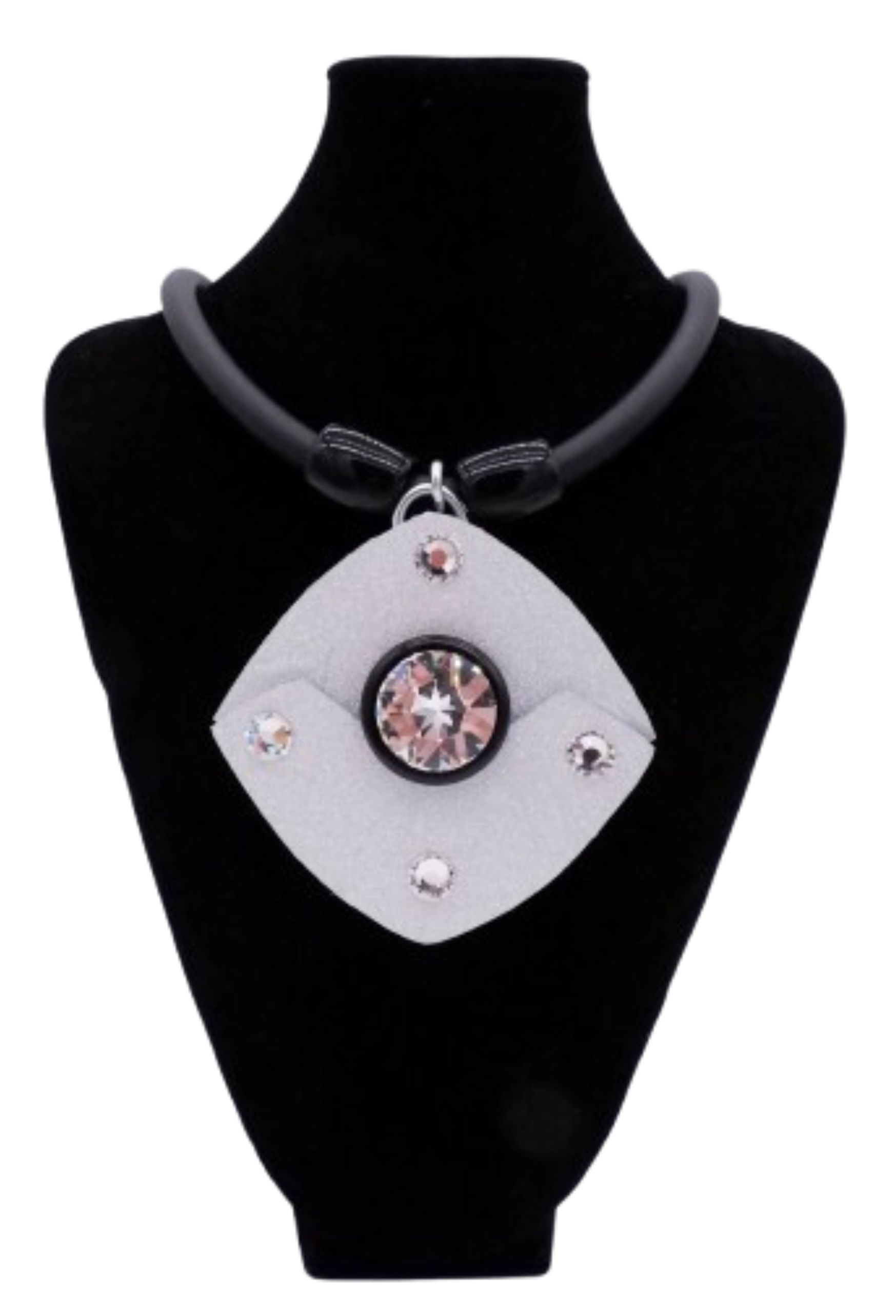 Silver Glitter Pendant Rubber Necklace SKU 27458