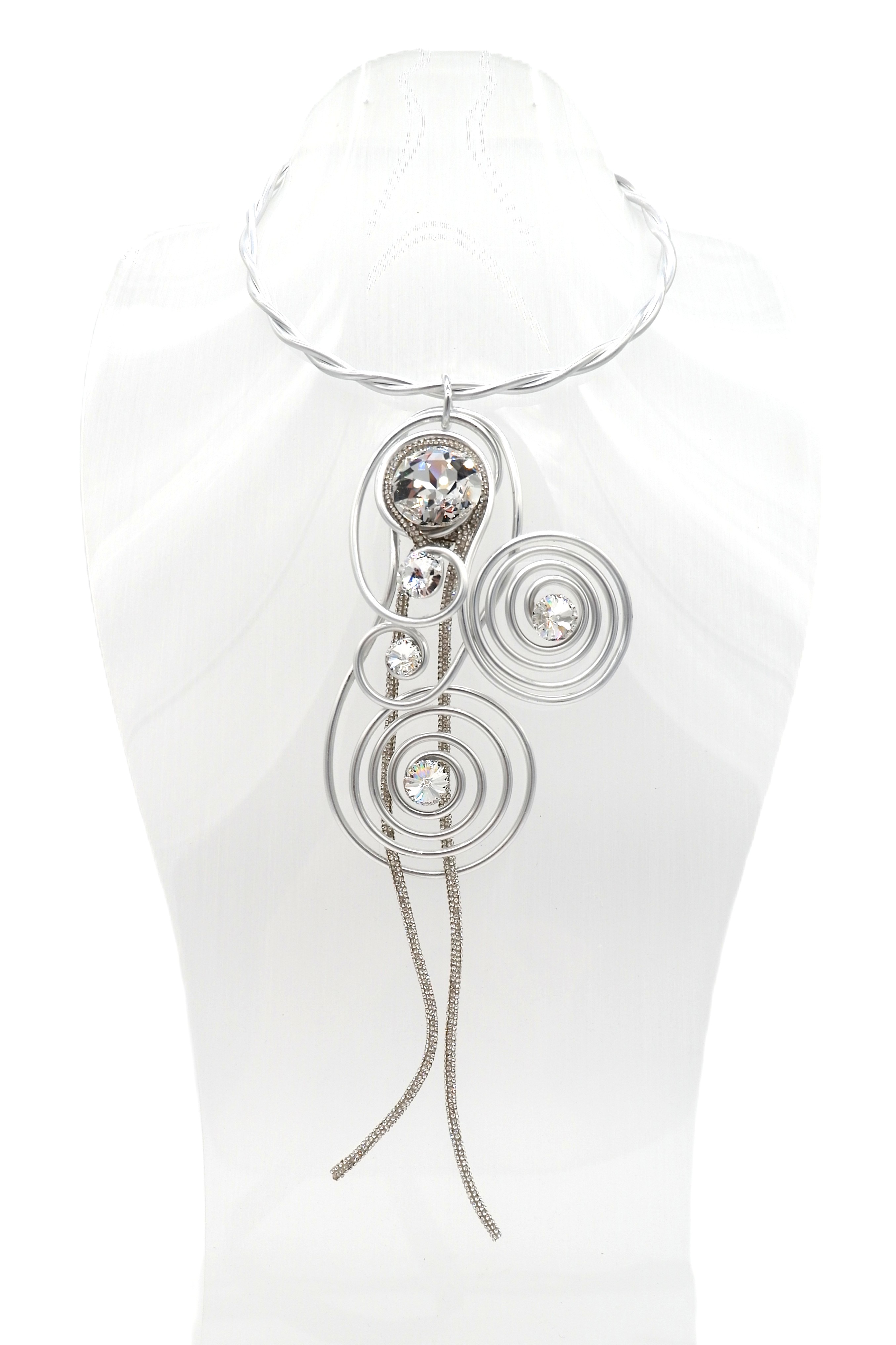 Jeff Lieb Add to Cart Rhinestone Tassels Silver Twist Wire Necklace SKU 30747 Sale Price $149.00 - Genuine Swarovski Crystals - Twist Wire Necklace - Made in USA