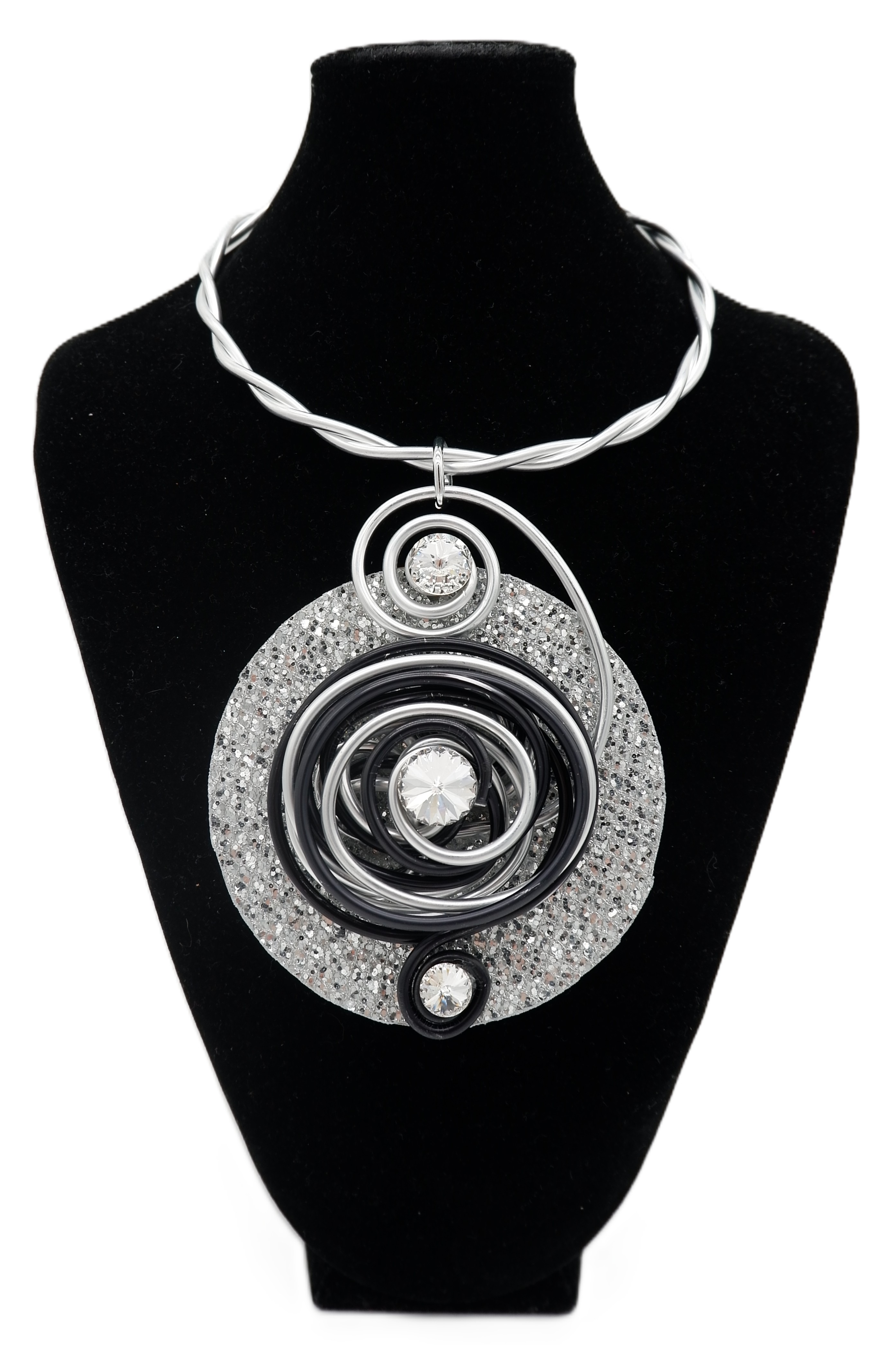 Jeff Lieb Add to Cart Silver Ribbon Twist Wire Necklace SKU 28483 Sale Price $149.00 - Genuine Swarovski Crystals - Twist Wire Necklace - Pendent Dimensions: (L) 8" x (W) 3.5"