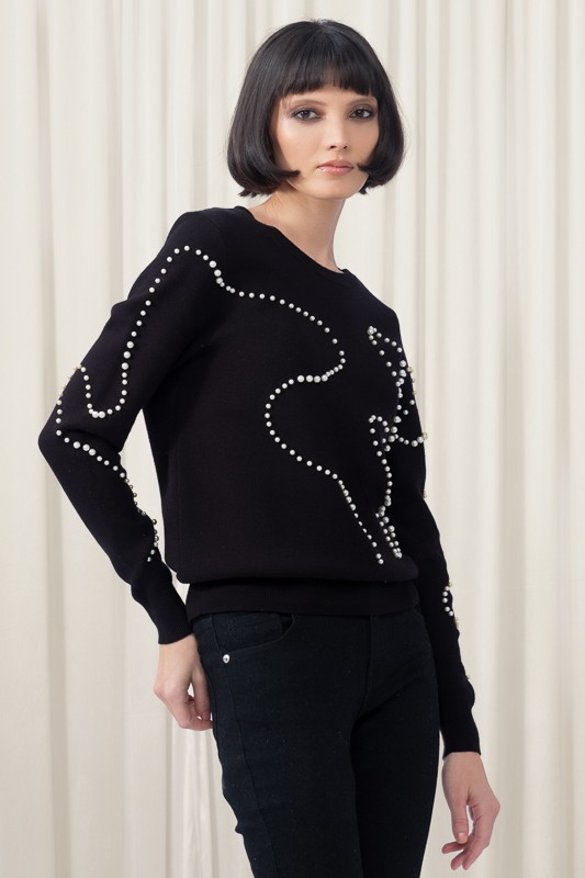 Product Description - Round neckline - Pearl embellishments - Long sleeves - Soft sweater knit - Materials: 80% Viscose, 20% Nylon