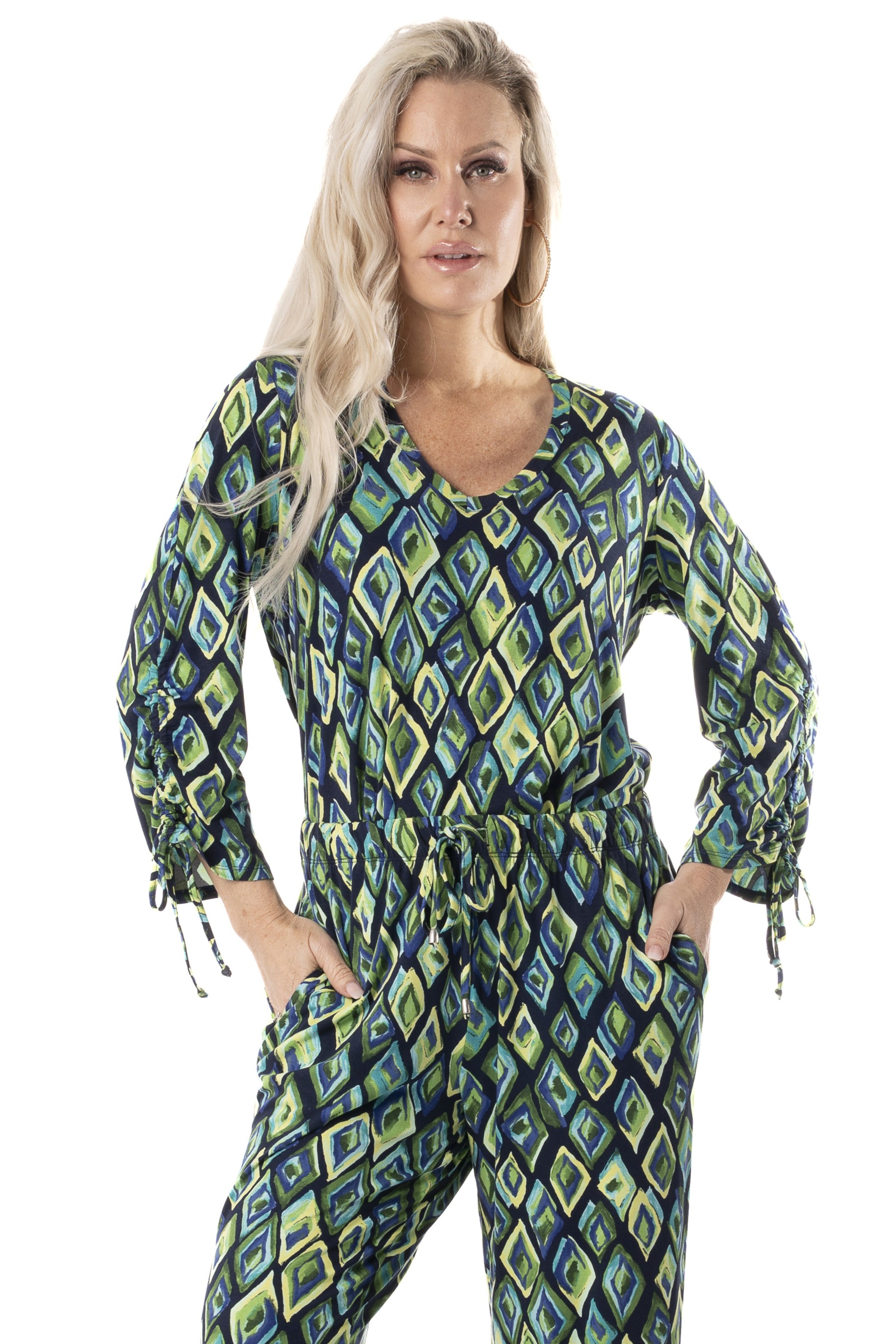 - 3/4 length drawstring sleeves