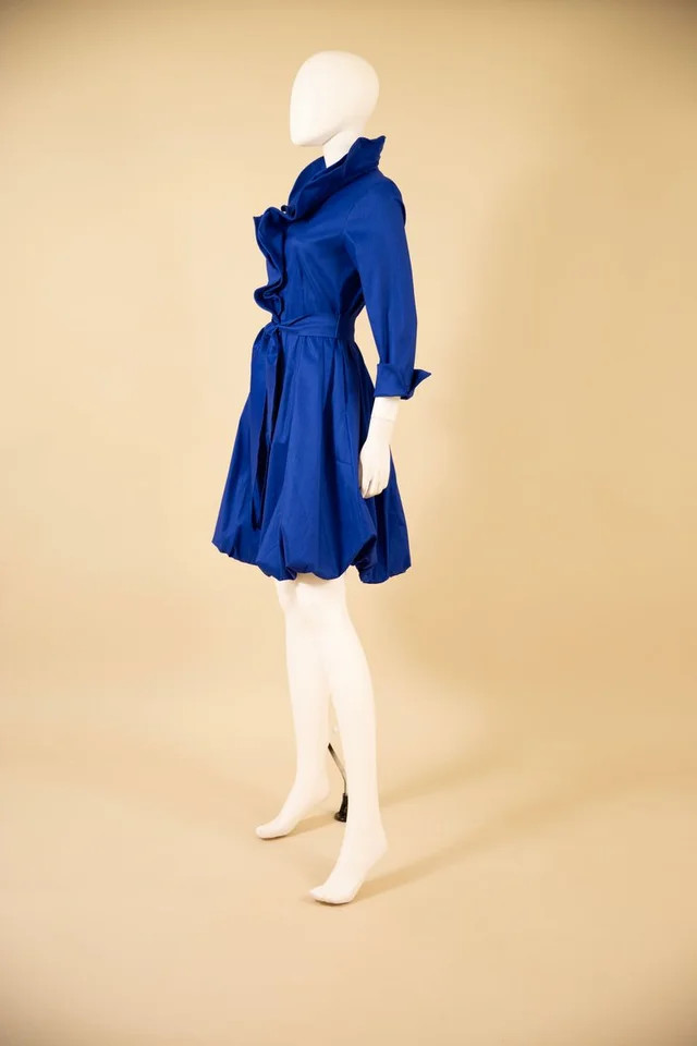 Samuel Dong View Details Triple Wired Collar Bubble Dress Sale Price $212.00 - Water-resistant - Cross tie front - Front pockets